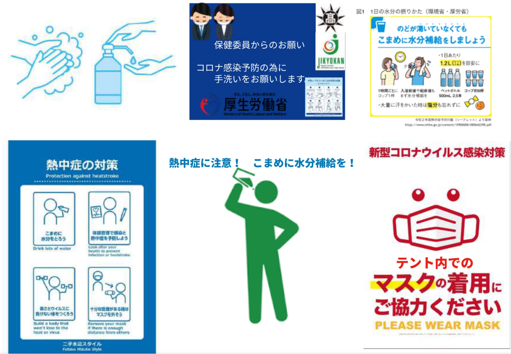 - ポスターで水分補給や手洗いをしっかり注意喚起できていた。